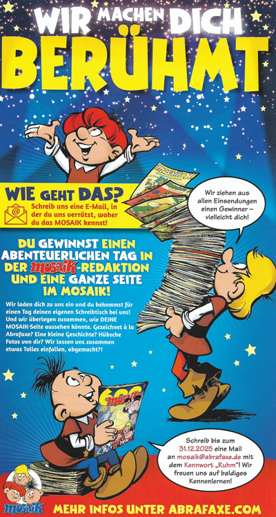 | | 70 Jahre Mosaik und fast 50 Jahre Abrafaxe-Heft.