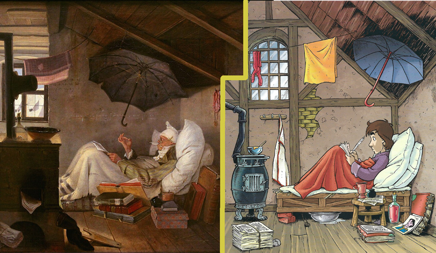 Das Heft 240 der Abrafaxe "Auf und davon!" enthält einen Druck (etwa 44 x 33 cm) des Öl auf Leinwand-Gemäldes "Die Abrafaxe in Öl" von Konstantin Kryssow.